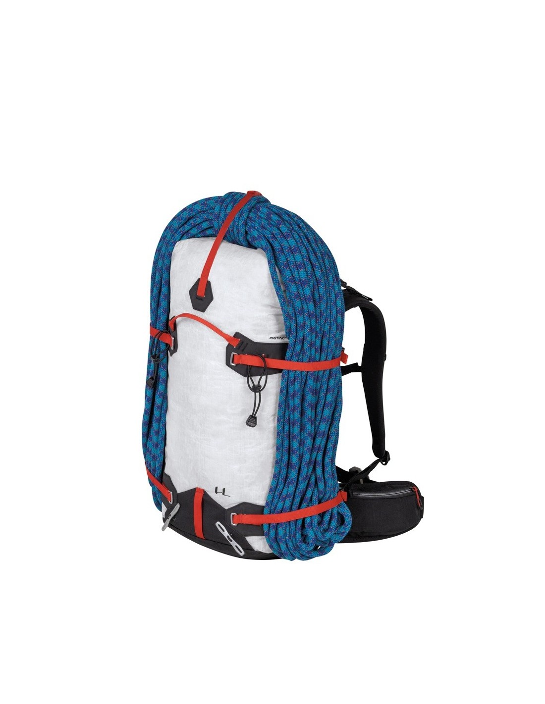 Essentiel à tous égards, il dispose d'un compartiment principal au volume rationnel, d'un système porte–matériel externe polyvalent qui permet de transporter fermement des piolets, des crampons, une corde et bien plus encore.